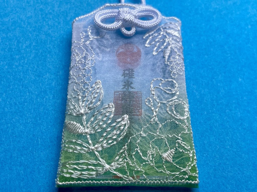 涼やかなレースの素材に八咫烏や梛の葉が刺繍されています。